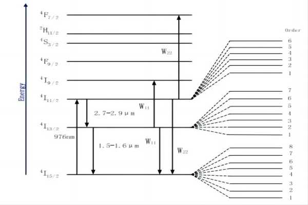圖2.Er: YAG能級和Stark亞能級的示意圖[1]